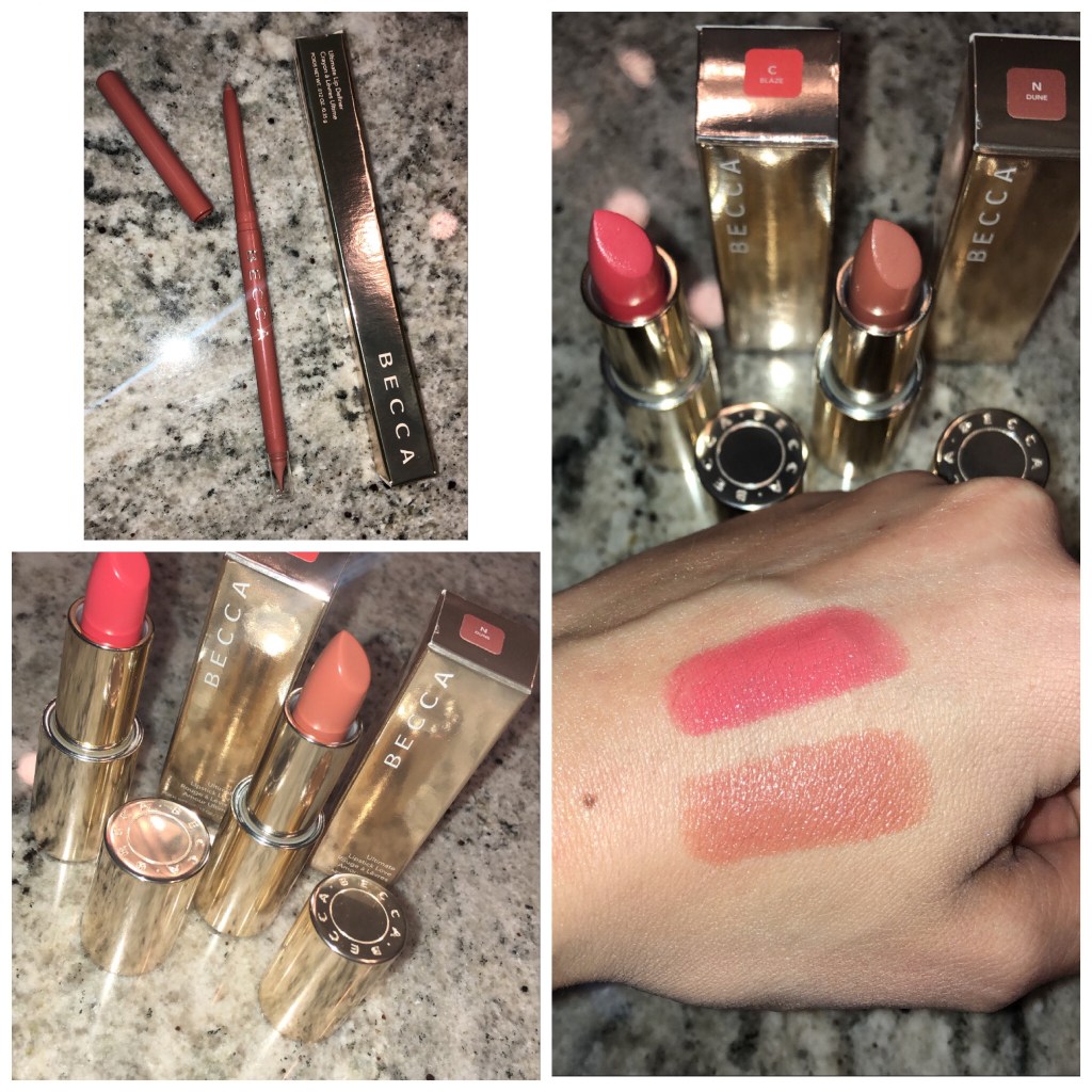 Let’s talk some Becca products, shall we? I haven’t tried Becca lip products in the past. And I was really excited to try this combination. Needless to say that the packaging is absolutely stunning. The tubes are heavier and bulkier which gives them the lux feel. These lip shades are definitely up my alley.